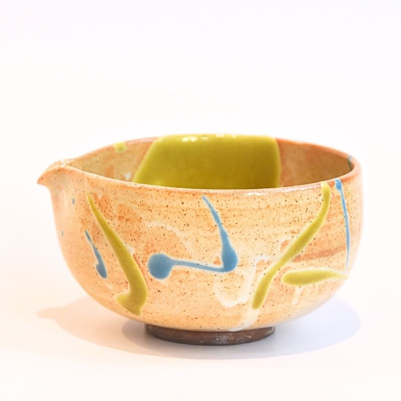 Spouted Matcha Latte Bowl by Tamba Ware - Light Blue and Orange
