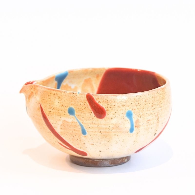 Spouted Matcha Latte Bowl by Tamba Ware - Red and Teal Blue