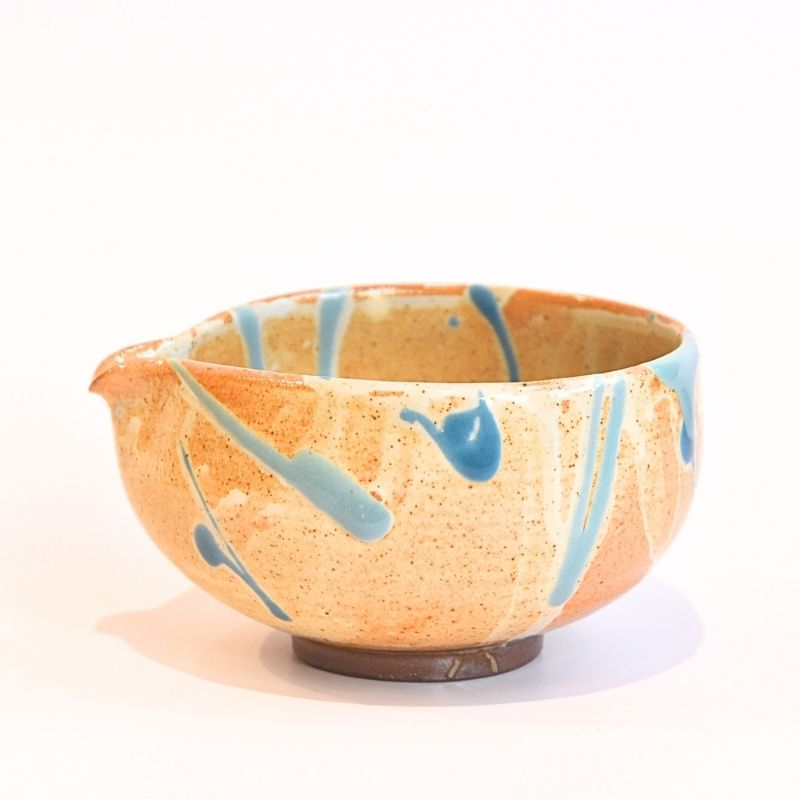 Spouted Matcha Latte Bowl by Tamba Ware - Teal Blue and Light Blue