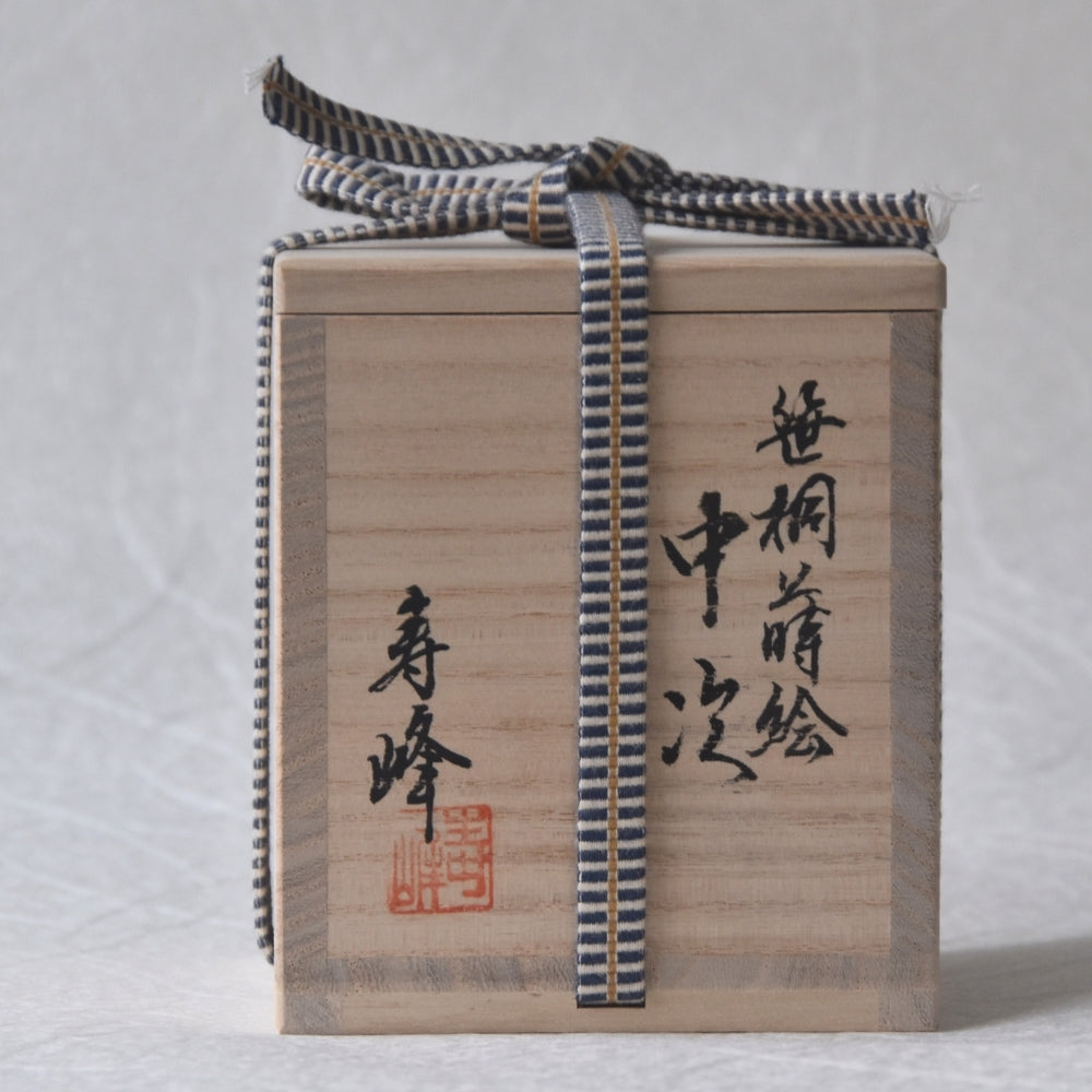 Nakatugi is a type of tea container used in the tea ceremony to store matcha. It is characterized by the lid and body joint being located at the center of the body. In contrast to the natsume, where the joint is closer to the top, the nakatugi has the lid split at the center. It is standard in size and the most commonly used.