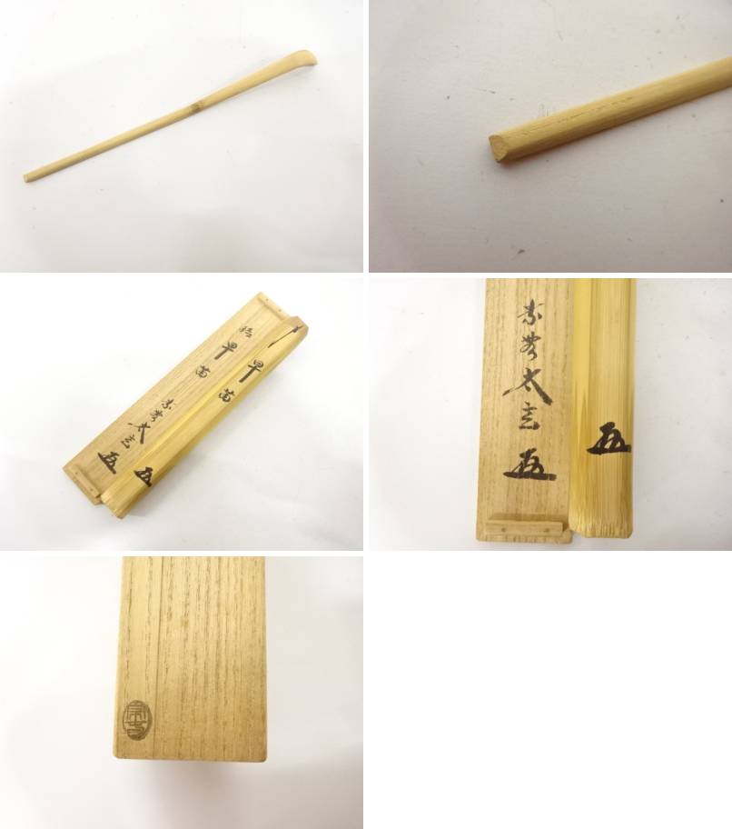 This bamboo chashaku (matcha tea scoop) was crafted by Sōshun and is accompanied by an original hakogaki (box inscription) written by Kobayashi Taigen, former abbot of Daitoku-ji, one of Kyoto’s most important Zen temples.