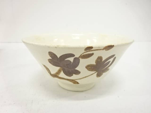 Tea Bowl with Floral Design in Buncheong Ware with Iron Painting — Pre-owned
