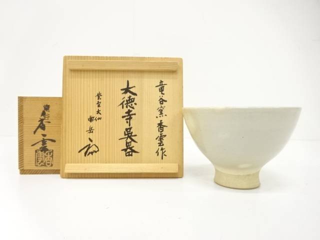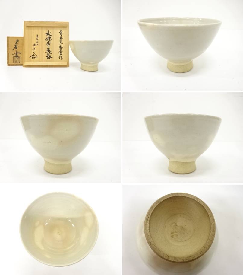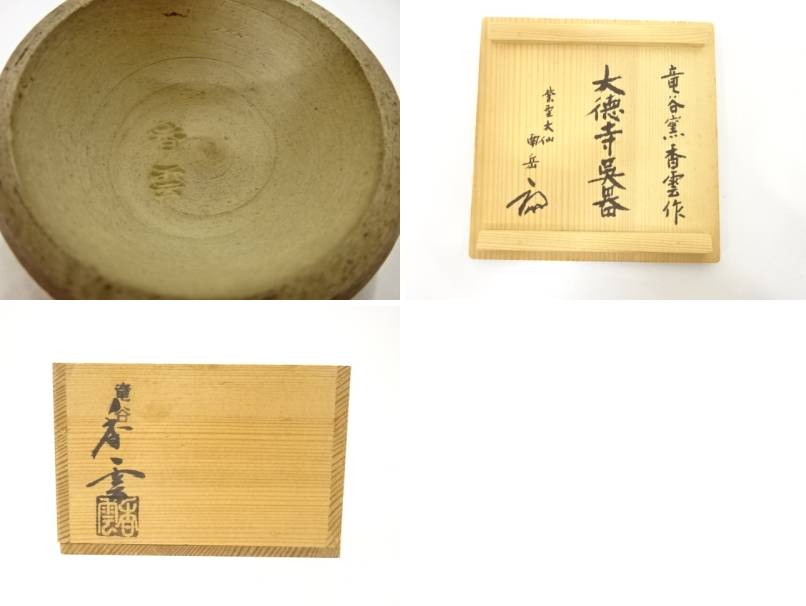 The bowl comes with an original hakogaki (box inscription) written by Ozeki Nangaku of Daisen-in, a sub-temple of Daitoku-ji. This inscription situates the piece within the spiritual and cultural lineage of Japanese chanoyu.