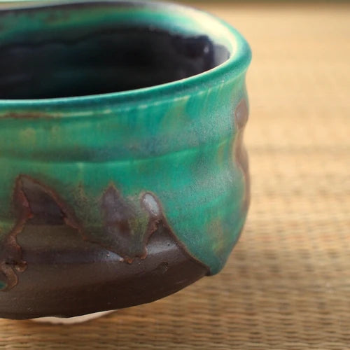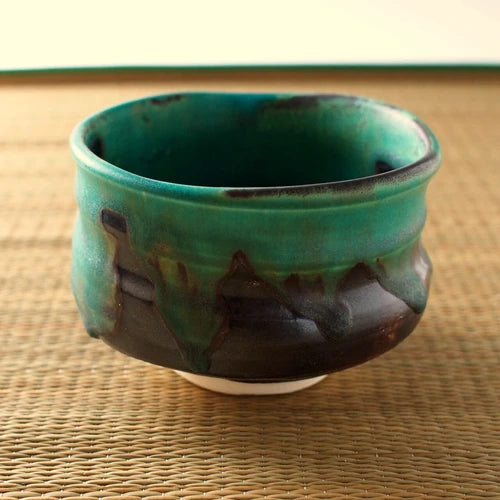 トルコ青流し 抹茶碗