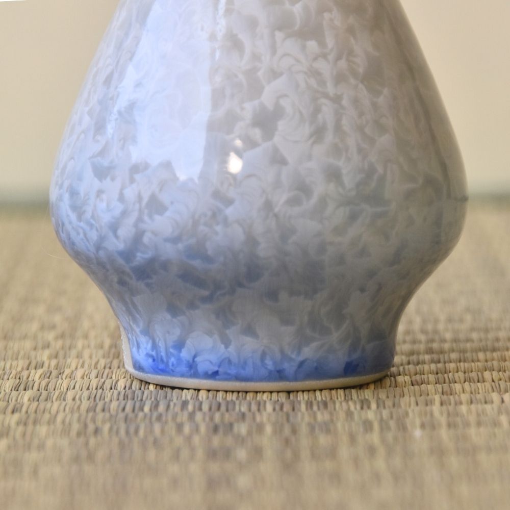 The mesmerizing crystalline patterns—resembling blossoms blooming on the surface—are created naturally as minerals within the glaze crystallize during the firing process. Depending on the angle of the light, the appearance of the pattern subtly changes, adding depth and beauty to each piece.