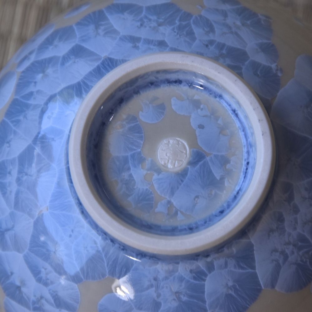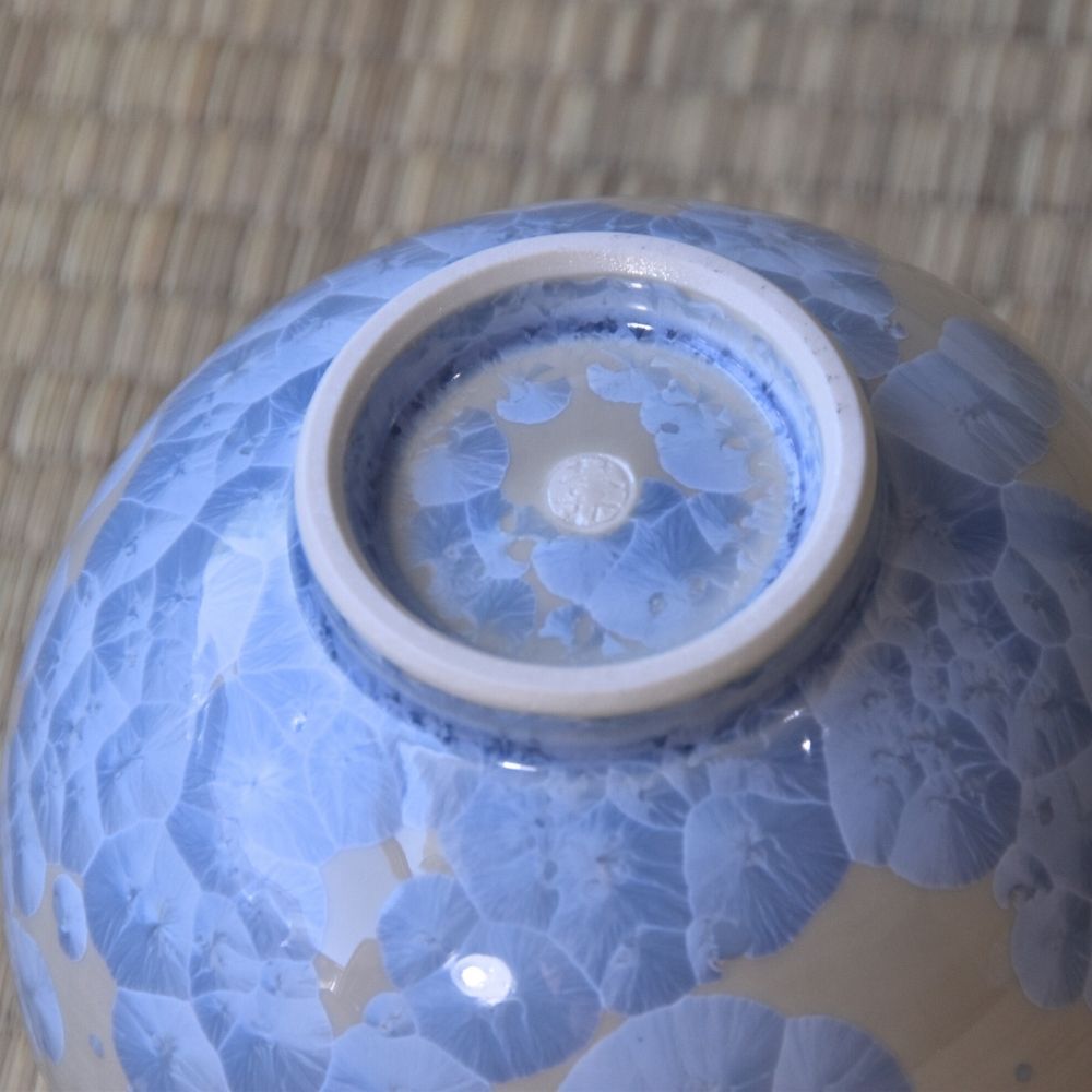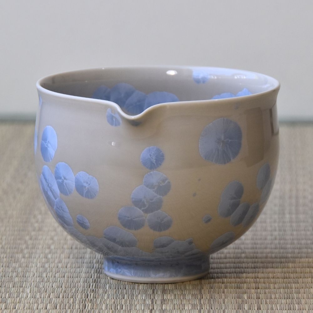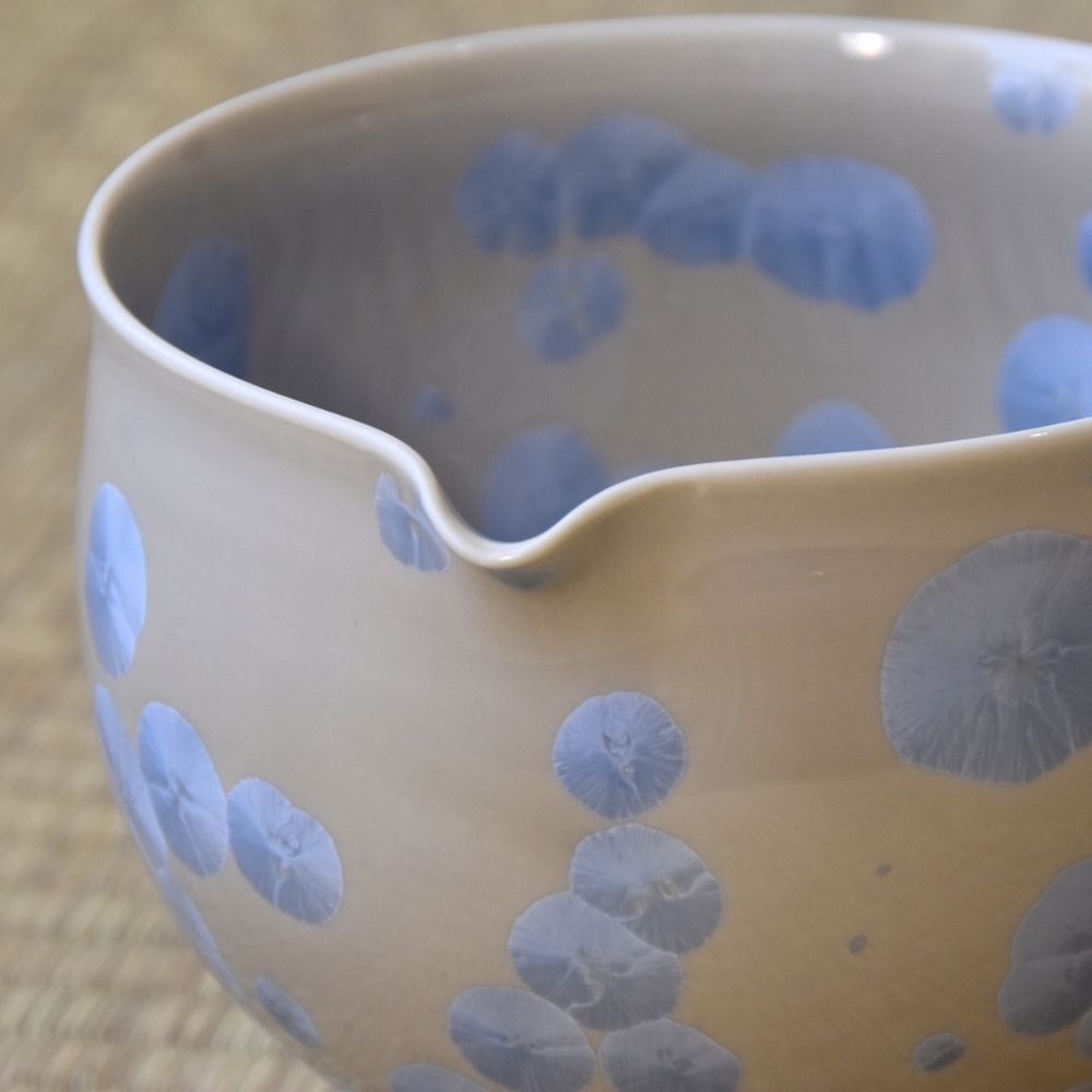 The mesmerizing crystalline patterns—resembling blossoms blooming on the surface—are created naturally as minerals within the glaze crystallize during the firing process. Depending on the angle of the light, the appearance of the pattern subtly changes, adding depth and beauty to each piece.
