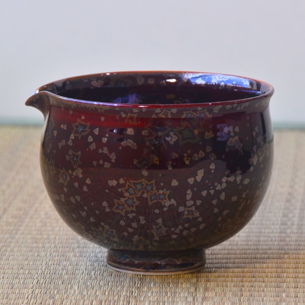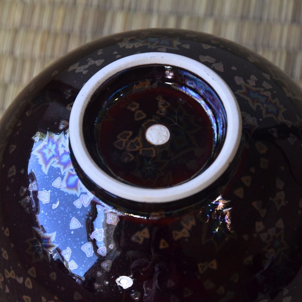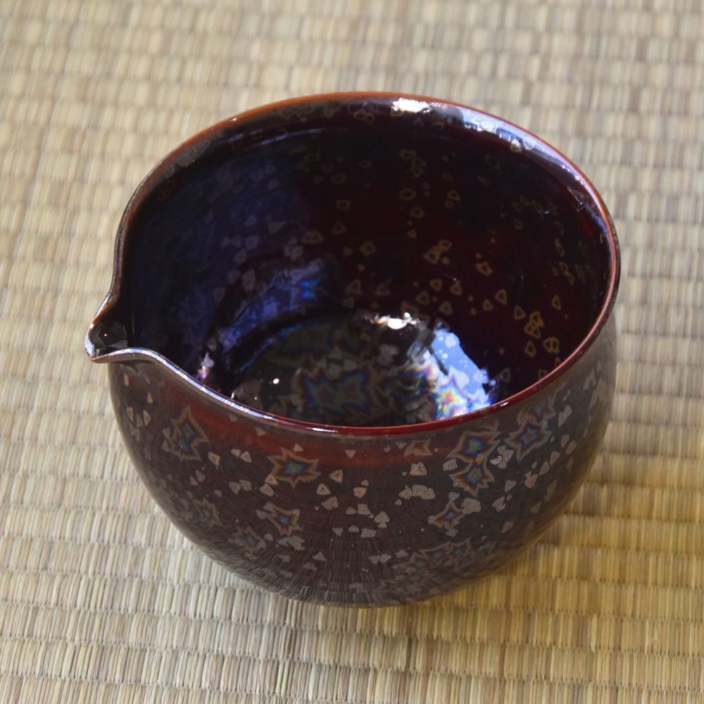 Crafted by Touan, a Kyoto-based kiln founded in 1922, this piece features their original glaze technique known as Hoshi-kesshō (Star Crystal).