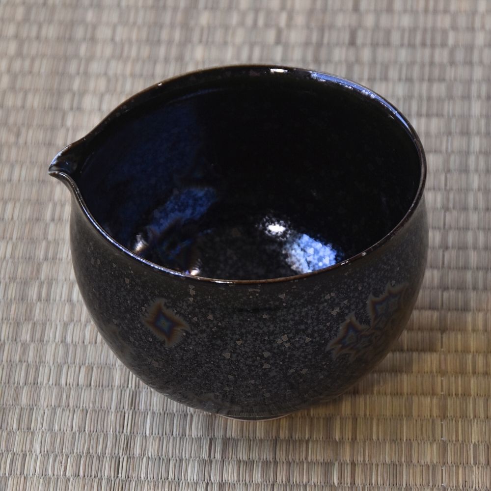 Crafted by Touan, a Kyoto-based kiln founded in 1922, this piece features their original glaze technique known as Hoshi-kesshō (Star Crystal).