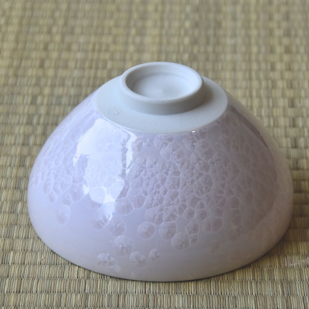 The mesmerizing crystalline patterns—resembling blossoms blooming on the surface—are created naturally as minerals within the glaze crystallize during the firing process. Depending on the angle of the light, the appearance of the pattern subtly changes, adding depth and beauty to each piece.