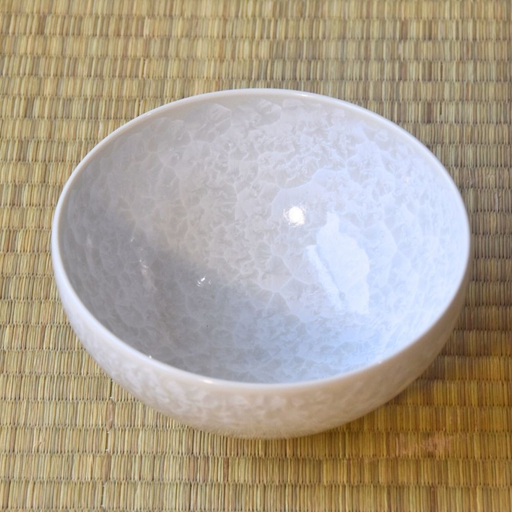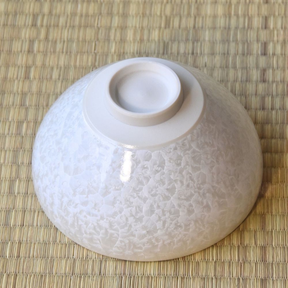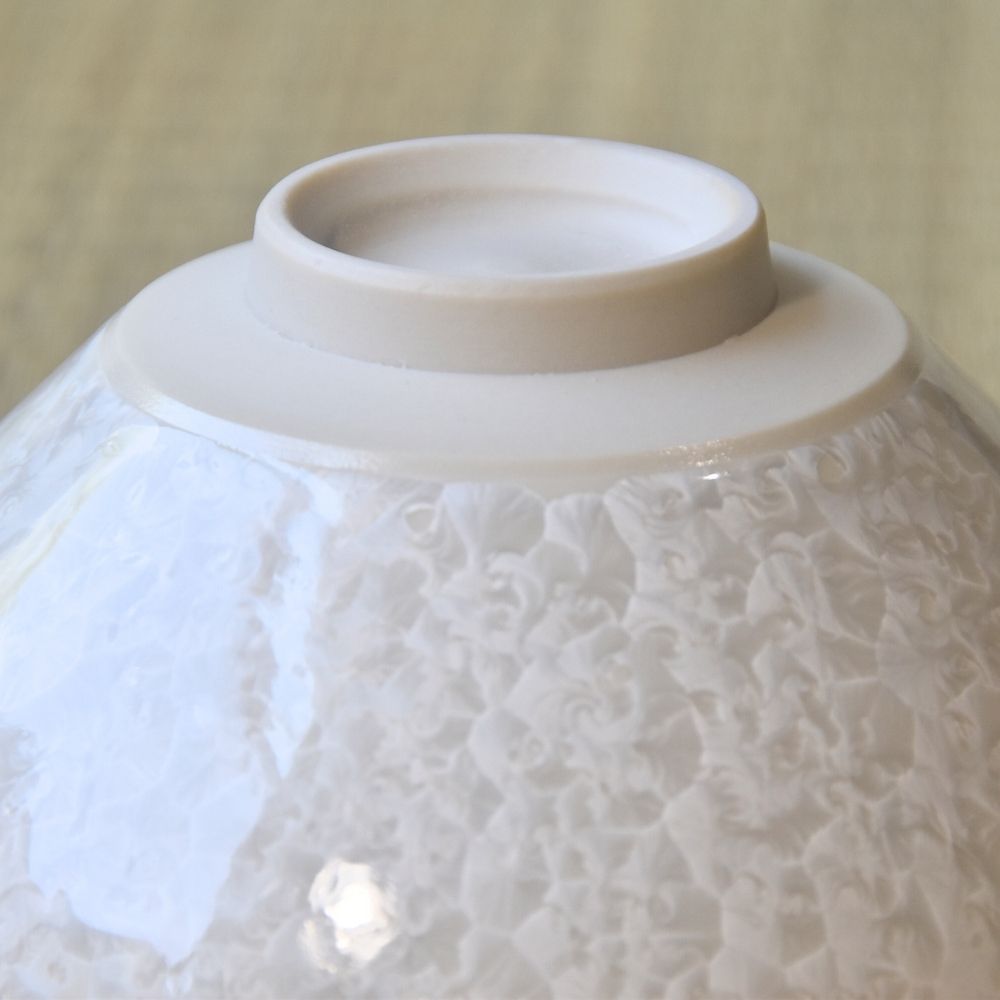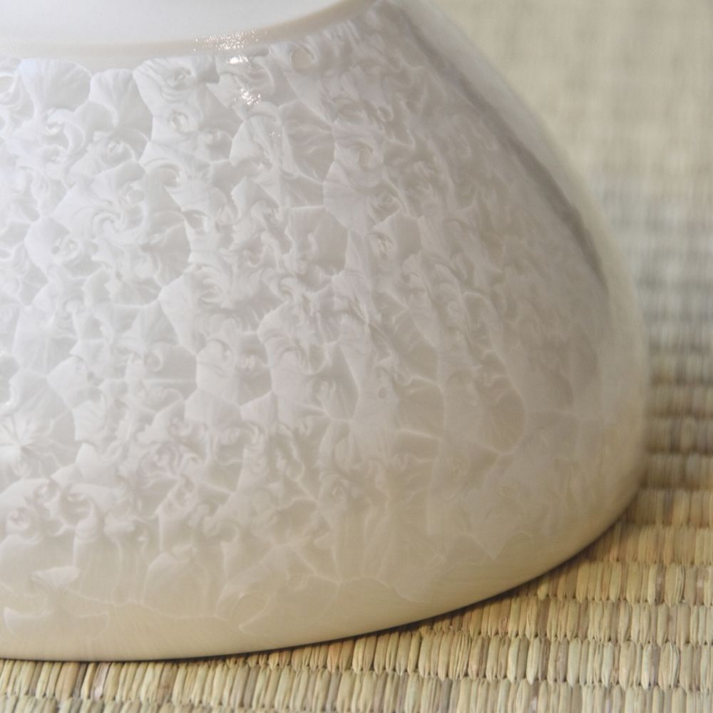 The mesmerizing crystalline patterns—resembling blossoms blooming on the surface—are created naturally as minerals within the glaze crystallize during the firing process. Depending on the angle of the light, the appearance of the pattern subtly changes, adding depth and beauty to each piece.