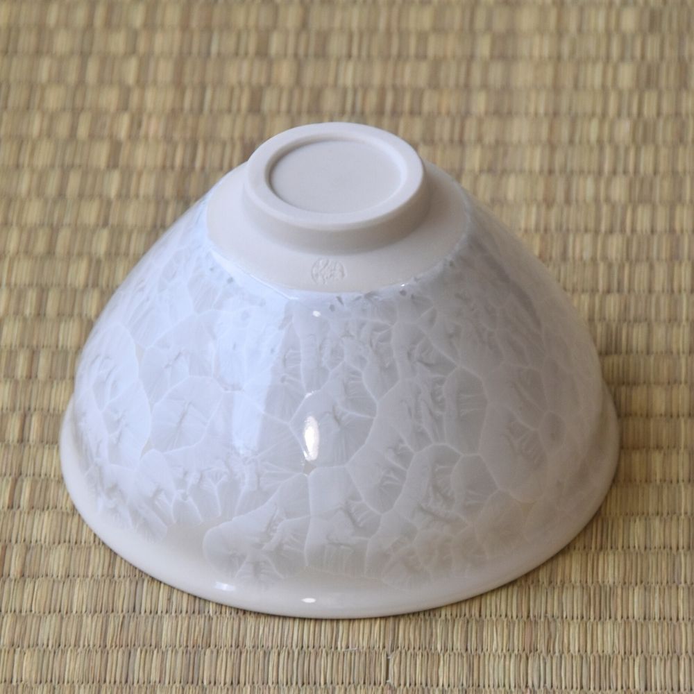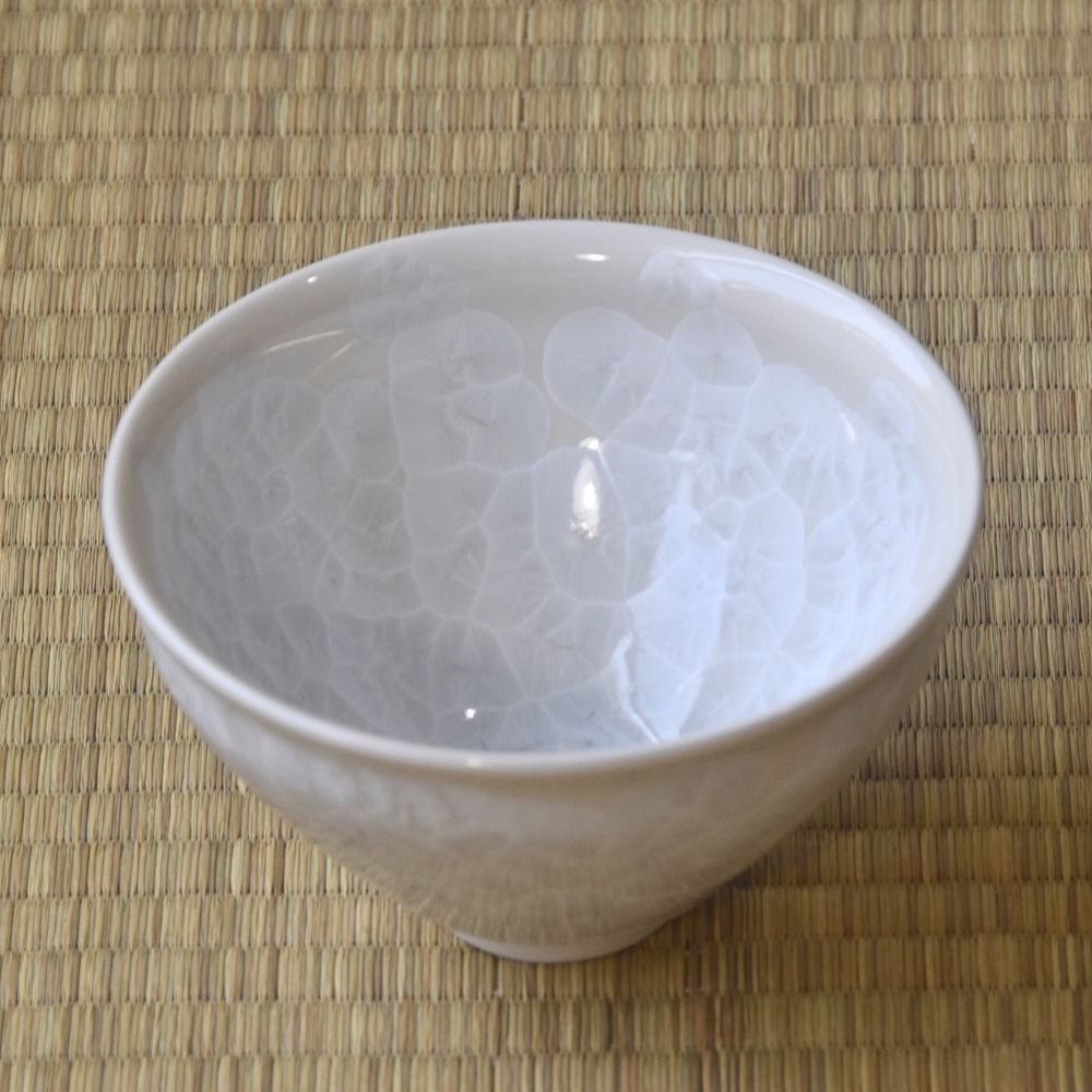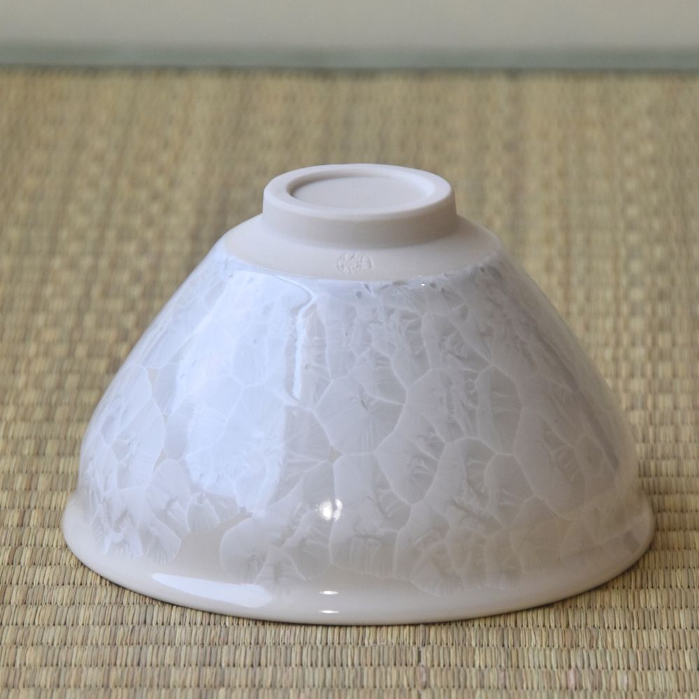 The mesmerizing crystalline patterns—resembling blossoms blooming on the surface—are created naturally as minerals within the glaze crystallize during the firing process. Depending on the angle of the light, the appearance of the pattern subtly changes, adding depth and beauty to each piece.