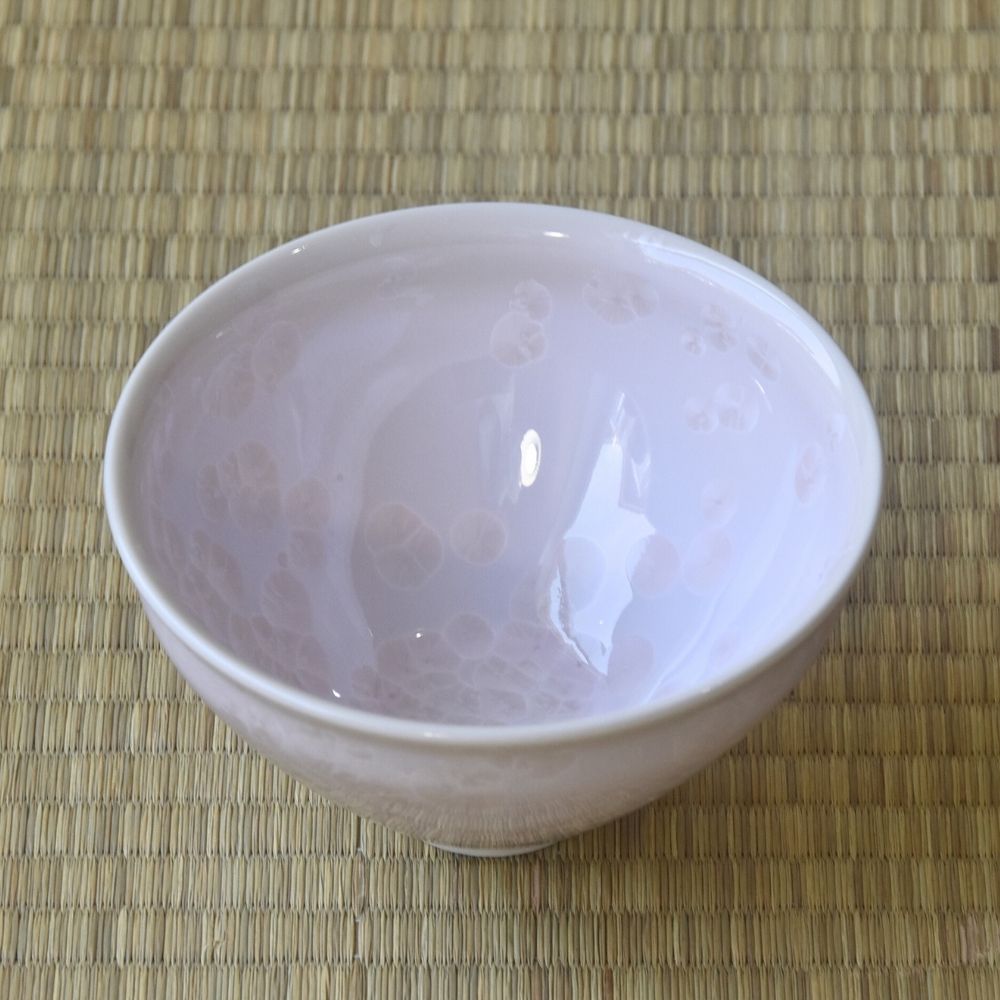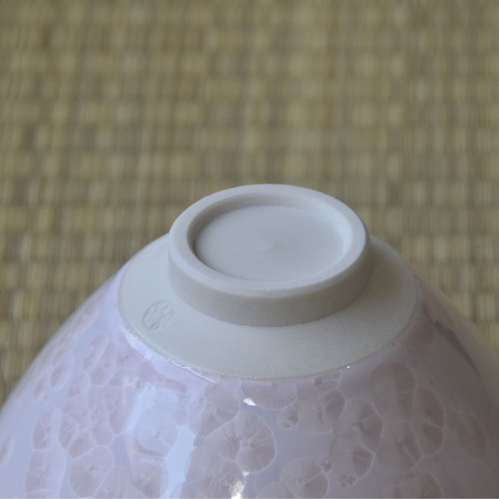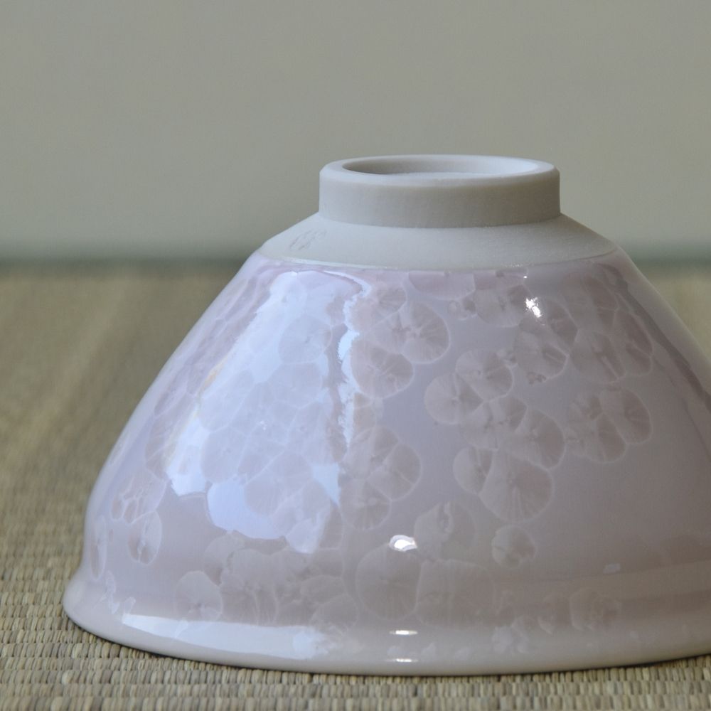 The mesmerizing crystalline patterns—resembling blossoms blooming on the surface—are created naturally as minerals within the glaze crystallize during the firing process. Depending on the angle of the light, the appearance of the pattern subtly changes, adding depth and beauty to each piece.