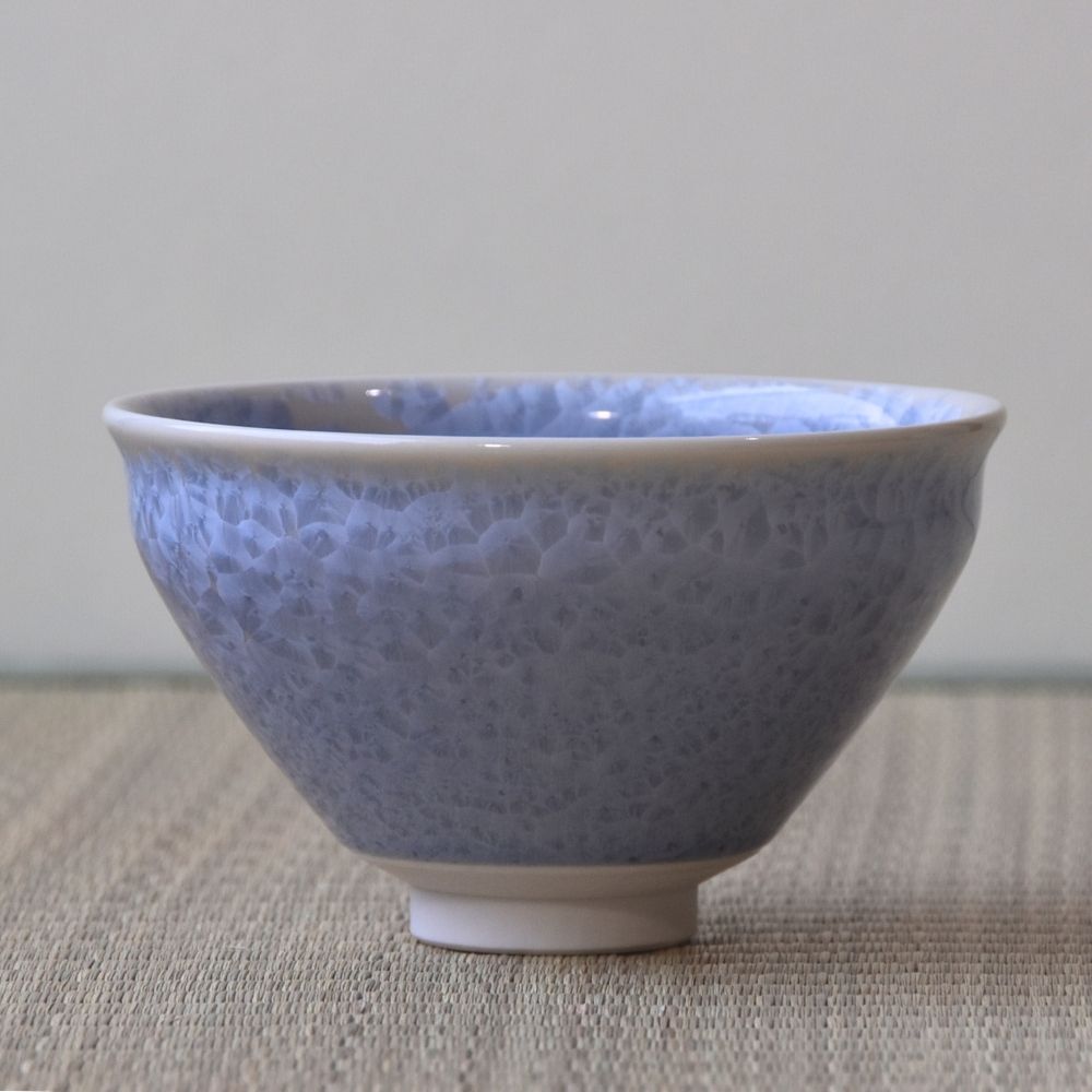 The mesmerizing crystalline patterns—resembling blossoms blooming on the surface—are created naturally as minerals within the glaze crystallize during the firing process. Depending on the angle of the light, the appearance of the pattern subtly changes, adding depth and beauty to each piece.