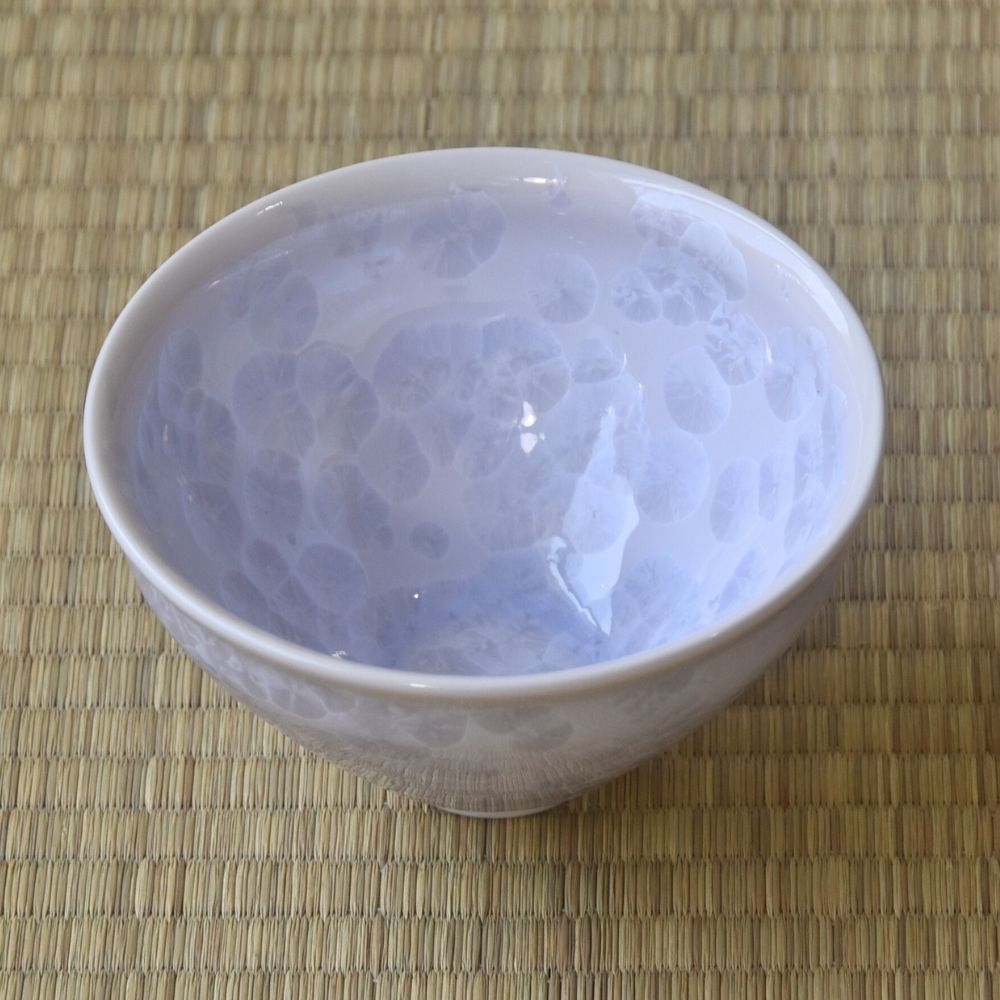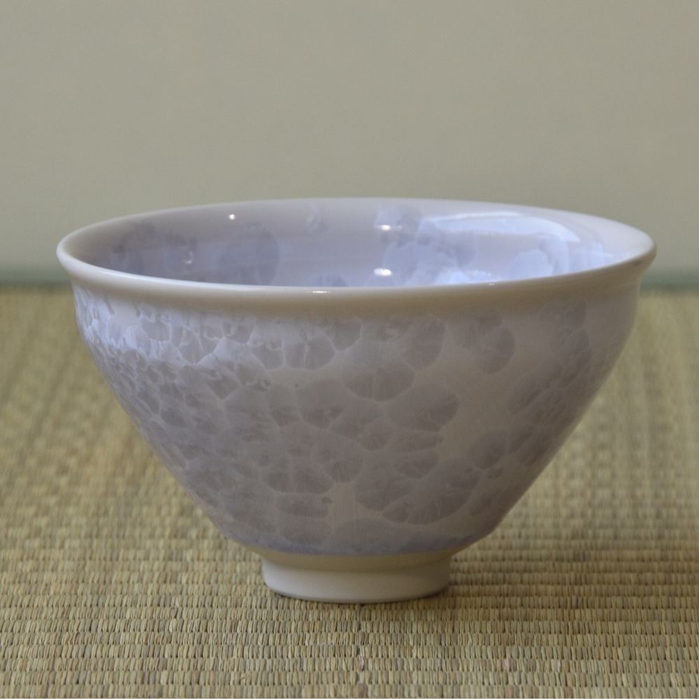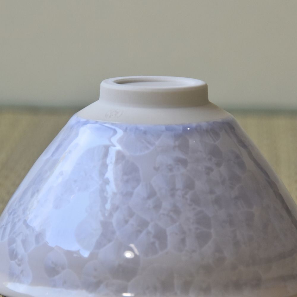 The mesmerizing crystalline patterns—resembling blossoms blooming on the surface—are created naturally as minerals within the glaze crystallize during the firing process. Depending on the angle of the light, the appearance of the pattern subtly changes, adding depth and beauty to each piece.