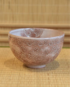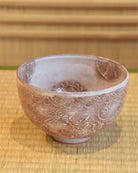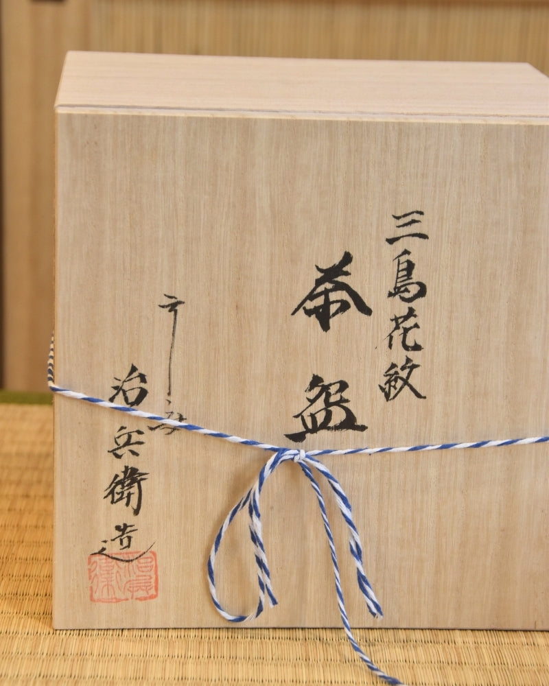 Mishima floral patterns are a modern adaptation of traditional Mishima tea bowl designs, featuring intricate motifs inspired by Jōmon, floral patterns, and Mishima City. Jibei Kiln traces its roots to the renowned artisan Jibei, selected by Furuta Oribe, and has been producing sencha tea utensils in Kyoto’s Gojōzaka since the Meiji era. Today, the kiln incorporates seal engraving techniques and diverse glaze expressions in its creations. The subdued glaze enhances the unique texture, while the delicate Kyoto-style inka patterns harmonize beautifully with the vessel’s form. The refined Mishima patterns make it a versatile piece, suitable for both Eastern and Western settings.