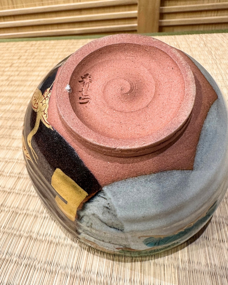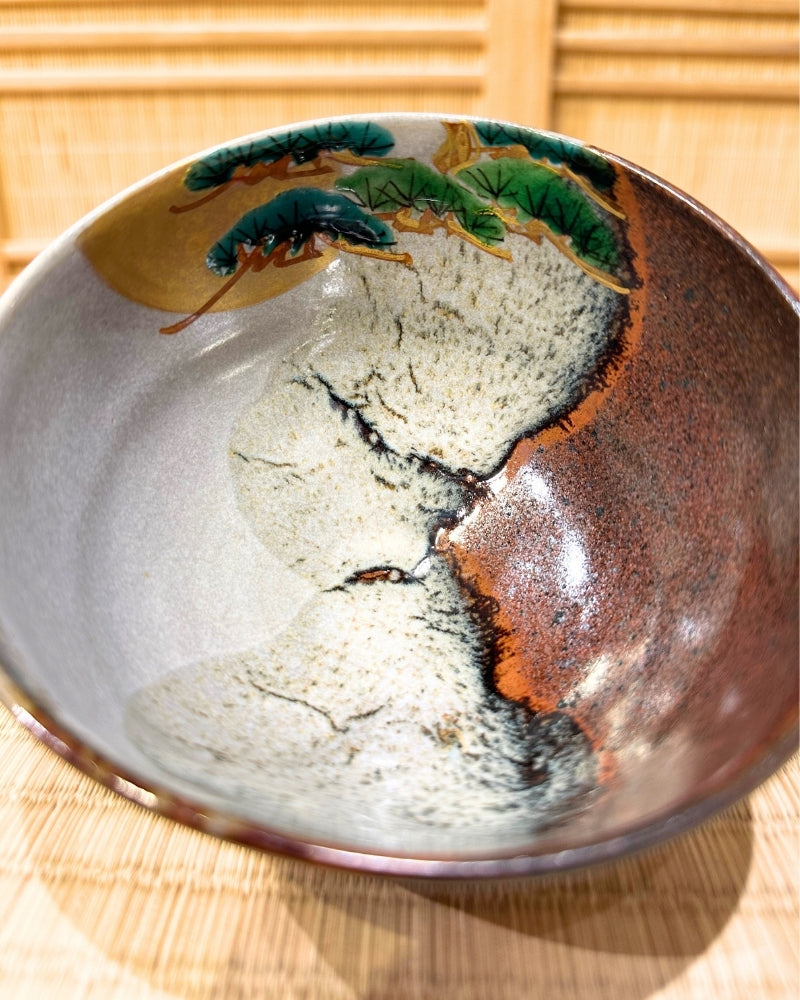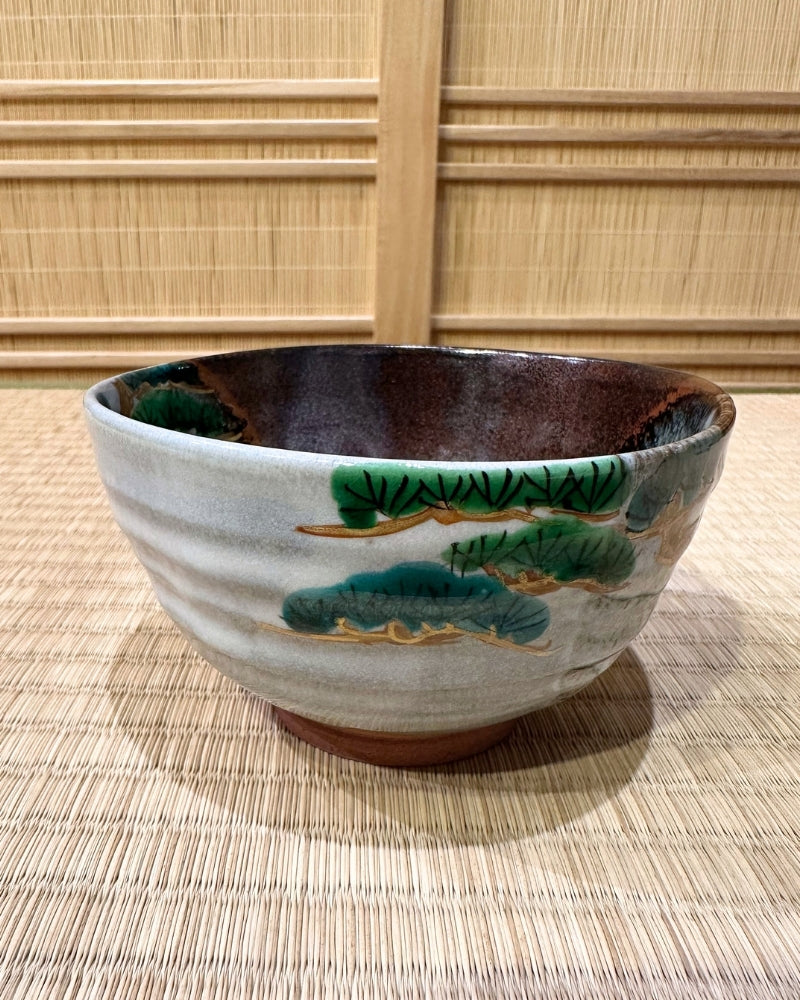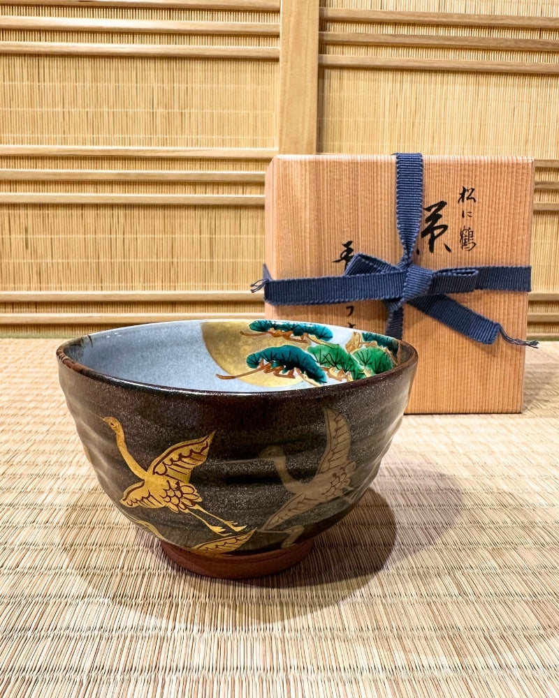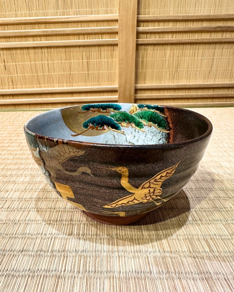 Pine and Cranes- Kyo Ware Matcha Tea Bowl