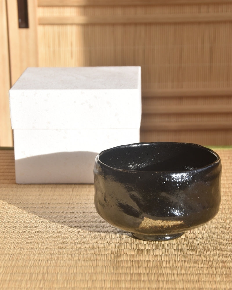 Kuro raku is a type of Raku ware tea bowl used in the Japanese tea ceremony. It was first created by Chōjirō under the guidance of Sen no Rikyū. Made by hand without a potter’s wheel, it has a thick, black-glazed finish that absorbs heat well, enhancing the flavor of matcha. Highly valued for embodying wabi-sabi, it is often used in koicha (thick tea) gatherings.
