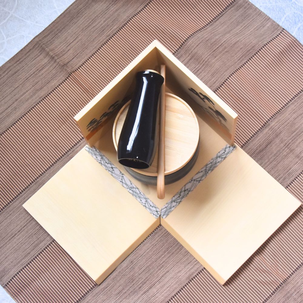 Unfold the two side panels of the box and create your little tearoom. The box lid can also be used as a tray. Experience “Otemae”, the essence of tea ceremony and enjoy a sip of matcha.